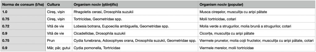 Totodată, testările din câmp realizate la diferiți fermieri arată că pe lângă acești dăunători aplicarea Exirel® asigură și menținerea sub control a lepidopterelor dăunătoare, cum ar moliile tortricide sau cotari.