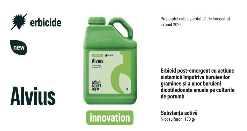 Erbicidul Alvius, OD, pe bază de nicosulfuron, 100 g/l, este destinat utilizării în culturile de porumb. Produsul controlează eficient un spectru larg de buruieni graminee anuale și perene, precum și unele specii sensibile de buruieni dicotiledonate.