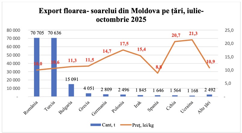 Producția de floarea-soarelui se menține stabilă, la 11,5–12 milioane tone, însă cea de soia a scăzut semnificativ, la 5–5,5 milioane tone, față de 7,2 milioane tone în 2024.