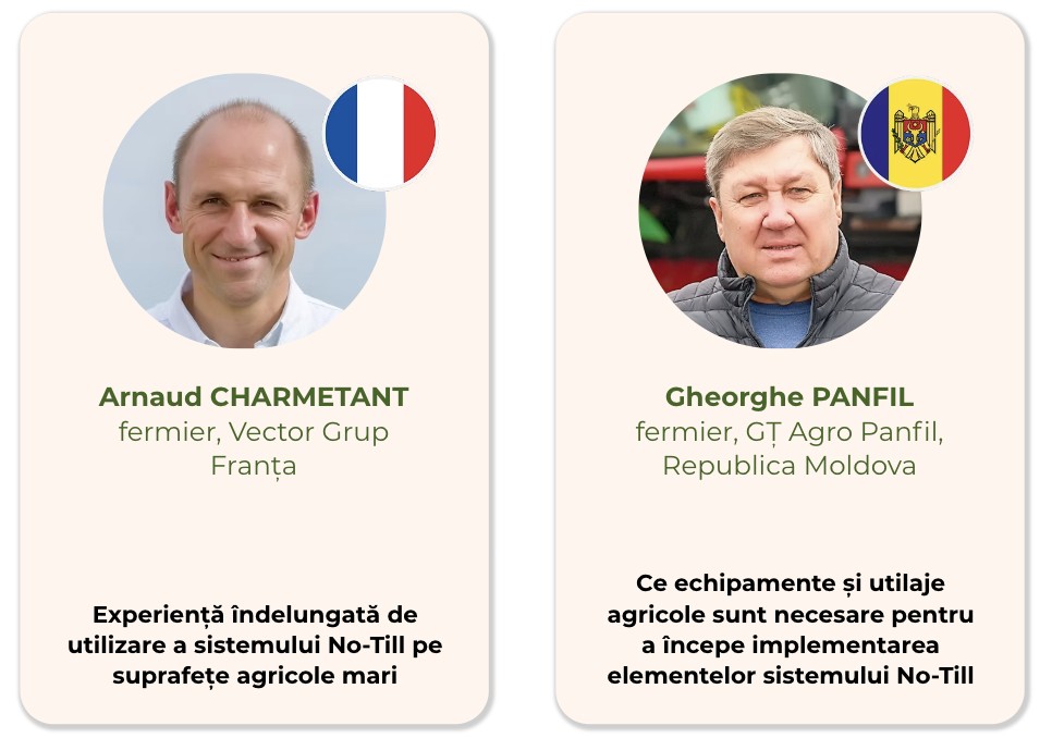 - Gheorghe Panfil, reprezentând Agro Panfil GȚ din Republica Moldova, un fermier cu experiență vastă în aplicarea No-till pe suprafețe extinse.