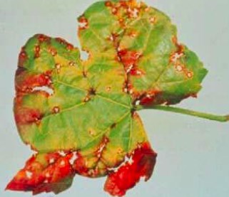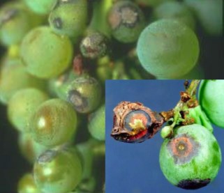 Figura 10.3 Antracnoza viței de vie: bobițe și frunze atacate