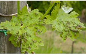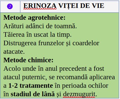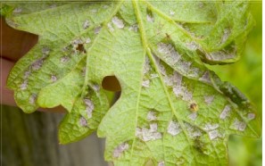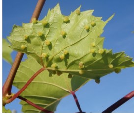Erinoza viței de vie (Acarianul galicol) – Colomerus vitis sin. Eriophies, acest acarian primăvara atacă în mare măsură frunzele tinere, mai puțin pețiolul, mugurii, cârceii și ciorchinii (figura 11.2).