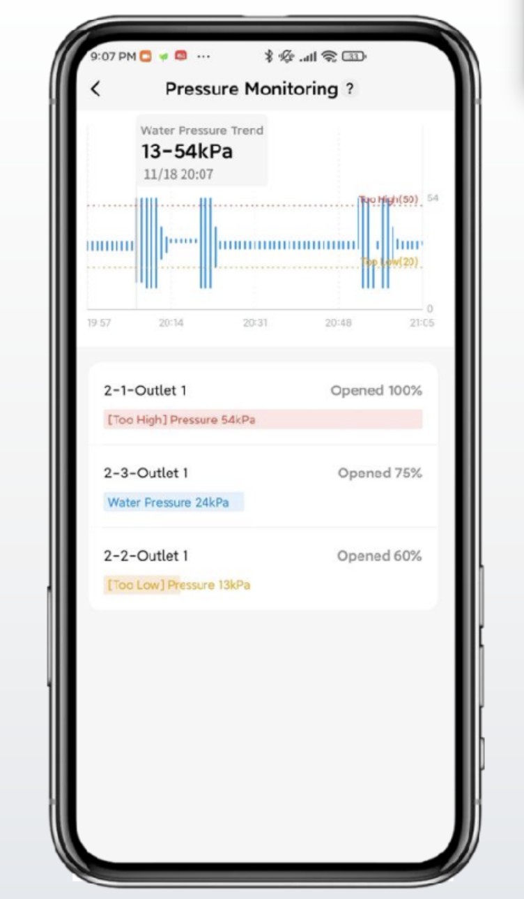 Unul dintre avantajele majore ale soluțiilor XAG este controlul presiunii și al debitului. Electrovalvele inteligente XAG FBV, echipate cu senzori de înaltă precizie, monitorizează presiunea în timp real și o ajustează automat.