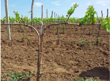 În primul an, la plantare vițele sunt scurtate la 2-3 ochi.