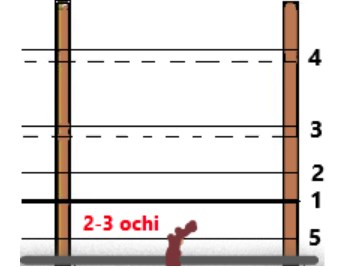 Ultimul legat se execută cu 5-6 cm mai jos de primul nivel de sârmă, pentru arcuirea lentă a coardelor lăsate în calitate de brațe.