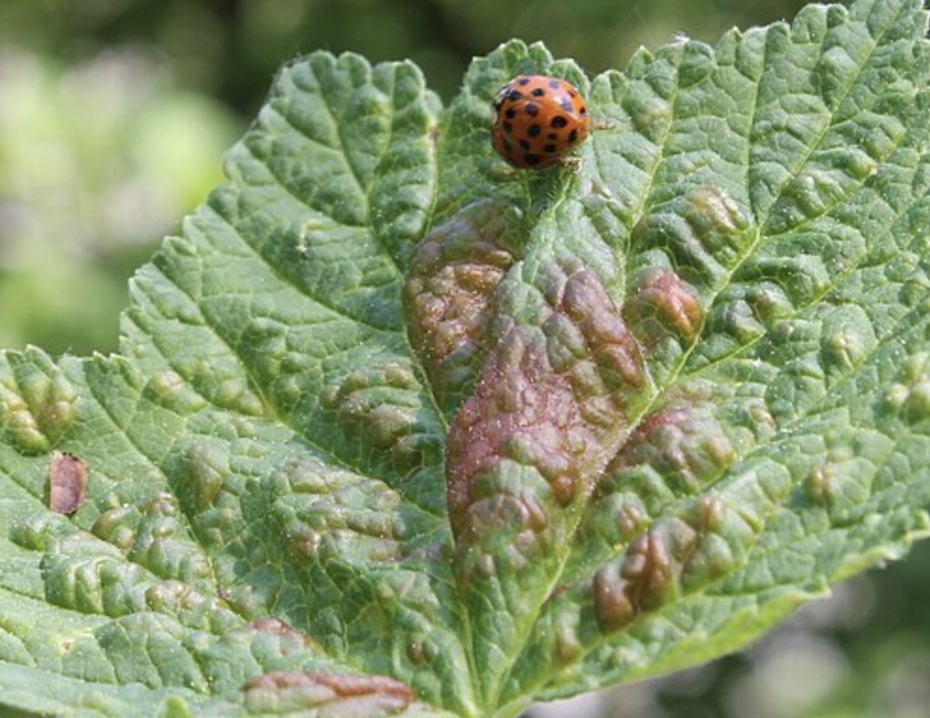 Dacă pe frunzele de coacăz apar pete roșii du deformațiuni (umflate), iar lăstarii tineri sunt îndoiți, este probabil ca planta să fi fost atacată de păduchi, care sug sucul din ea.