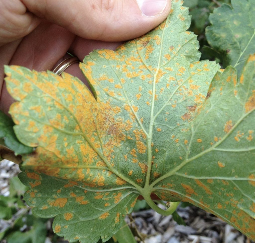 Dacă observați mici formațiuni maro înconjurate de o margine galbenă pe partea superioară a frunzelor de coacăz, înseamnă că coacăzul s-a îmbolnăvit de rugina cauzată de Puccinia ribesii caricis.