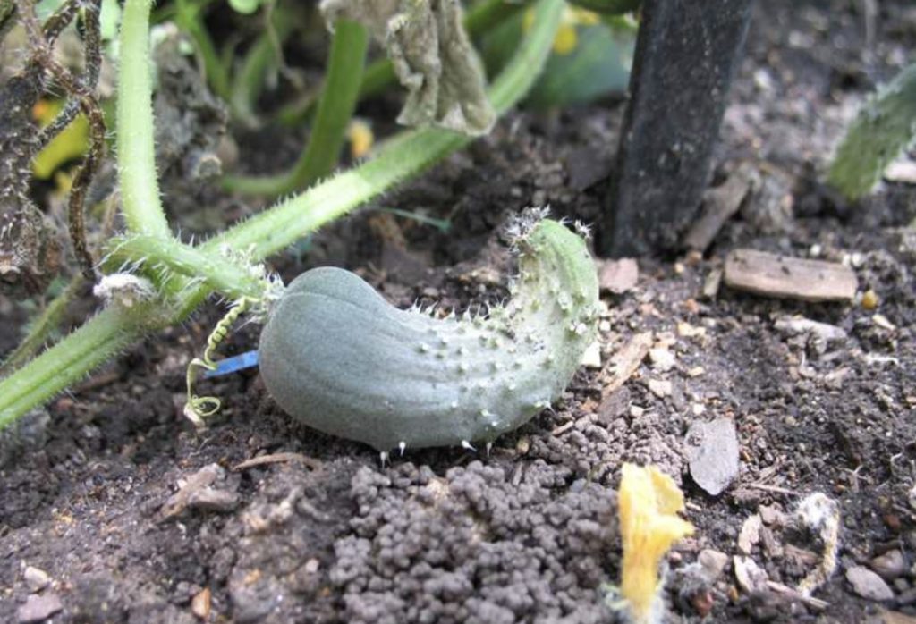 Pe lângă forma cârligată, insuficiența de umiditate este indicată de mărimea mică a fructului și de gustul amar, de îngălbenirea și ofilirea frunzelor. Ovarele, în același timp, cad parțial.