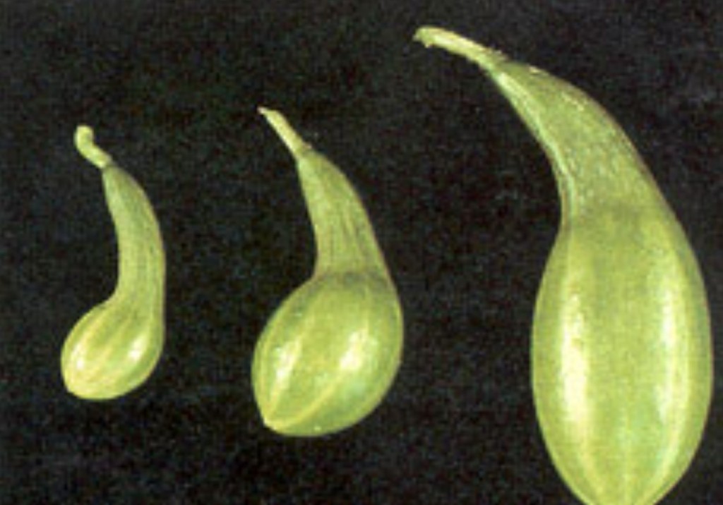 Culoarea fructelor devine mai palidă, pe ele se observă dungi longitudinale, iar forma devine mai curbată decât de obicei, având și un vârf răsucit.