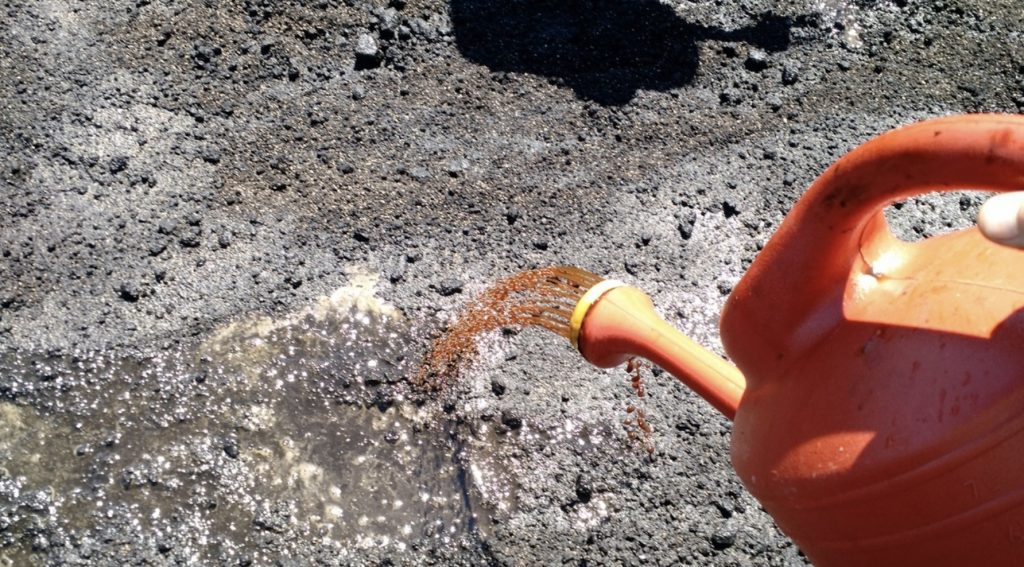 În timpul irigării porii solului se umplu cu apă, reducând oxigenul disponibil în sol. Obiectivul acestei etape este saturarea solului până la adâncimea de încorporare a sursei de carbon (15-20 cm).