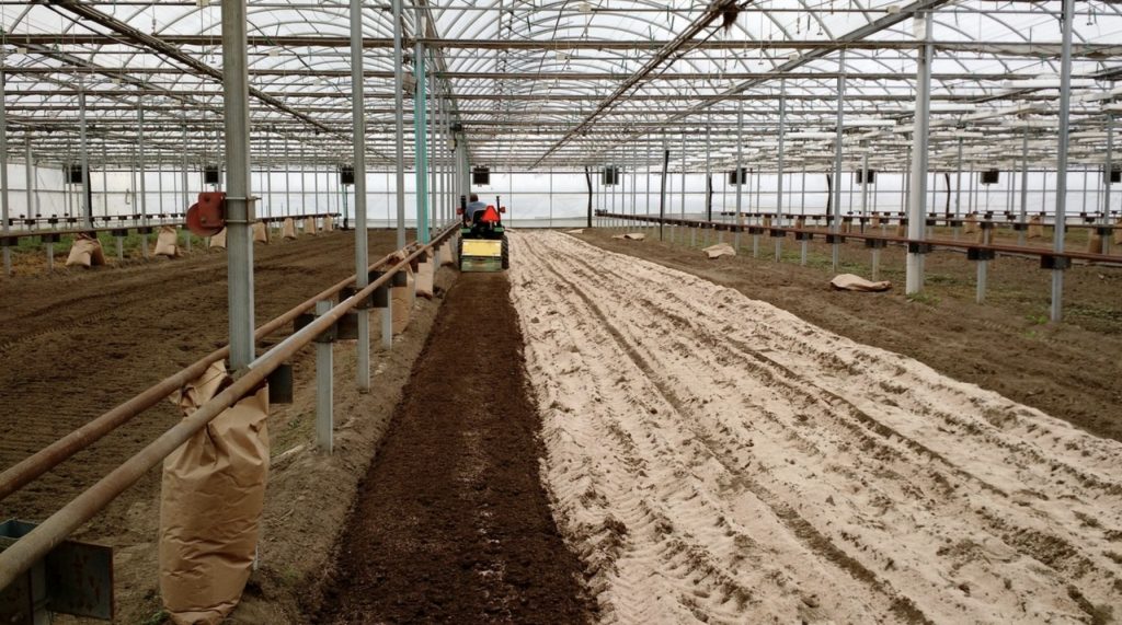 Pentru sistemele cu straturi înălțate (raised beds), amendamentul de carbon este aplicat și încorporat în sol înainte de formarea straturilor.