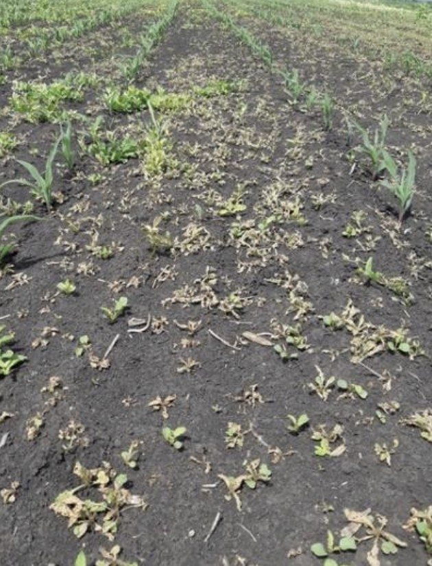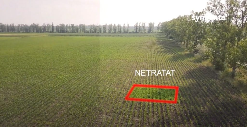 Pentru a vedea eficacitatea erbicidului am lasat o parcela din câmp netratată, tot câmpul a fost tratat cu ELUMIS®. Diferența este evidentă, după cum puteți observa în poza dată.