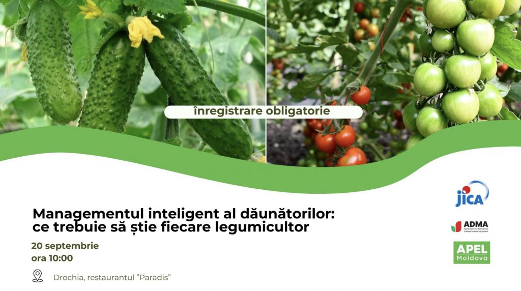 Evenimentul, intitulat „Management inteligent al dăunătorilor: ce trebuie să știe fiecare legumicultor”, va avea loc la 20 septembrie, ora 10:00, în orașul Drochia, restaurantul Paradis.
