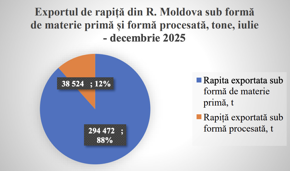 Exporturile de rapiță din Republica Moldova în sezonul comercial 2025–2026 confirmă o evoluție puternic ascendentă, atât din punct de vedere cantitativ, cât și valoric.