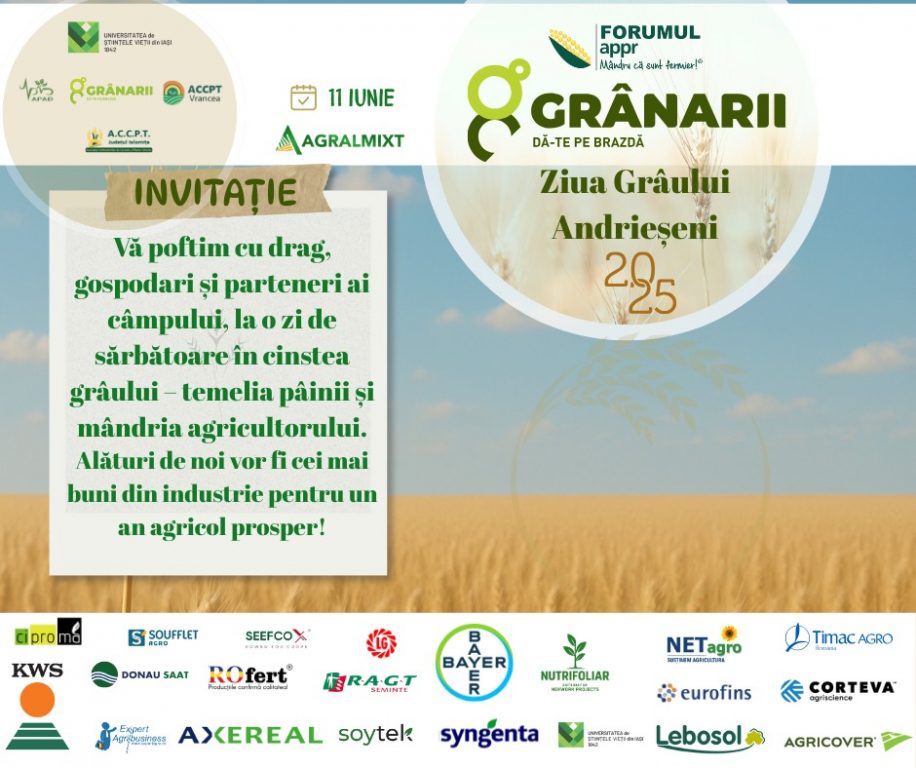 Pe 11 iunie 2025, comuna Andrieșeni din județul Iași va găzdui evenimentul agricol „Ziua Grâului Andrieșeni”, organizat de Asociația Grânarii.