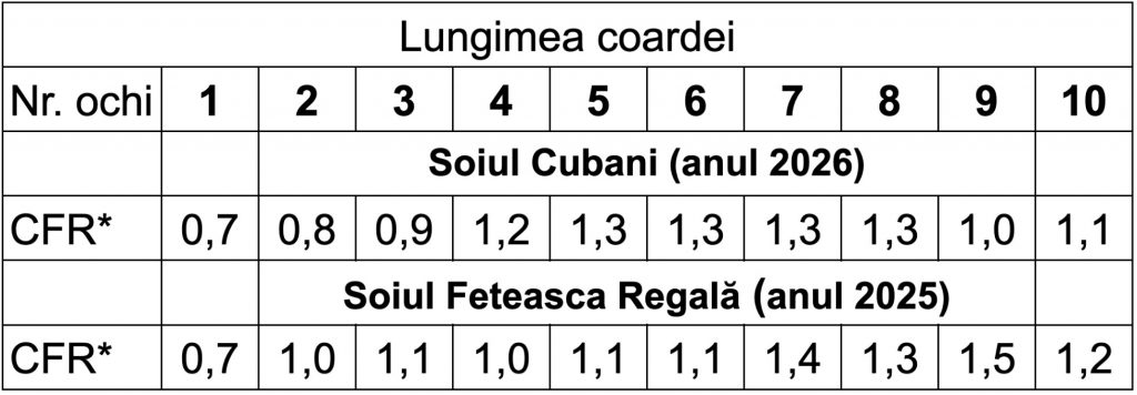 Putem concluziona că toţi factorii menţionaţi mai sus au influenţat asupra diferenţierii embrionare a mugurilor pentru sezonul 2026, iar în dependenţă de rezultatele obţinute ajustăm sarcina butucului (exprimată în ochi/butuc) pentru sezonul concret.
