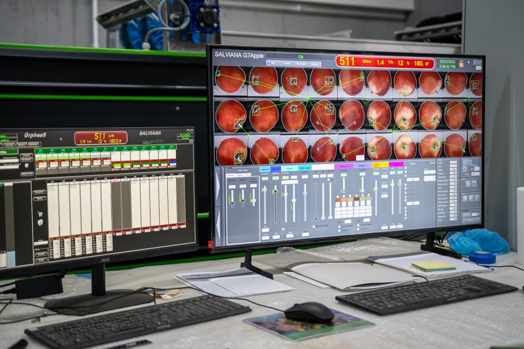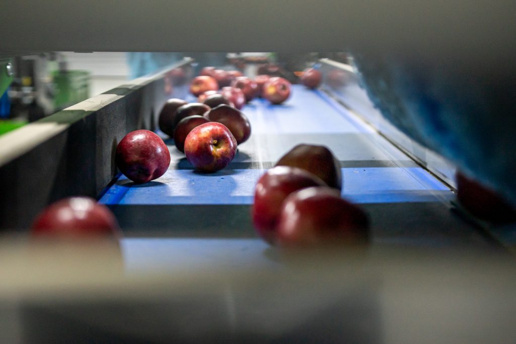 FructLine este dotată cu o linie de sortare de ultimă generație, capabilă să identifice cu precizie atât defectele externe, cât și pe cele interne ale merelor.