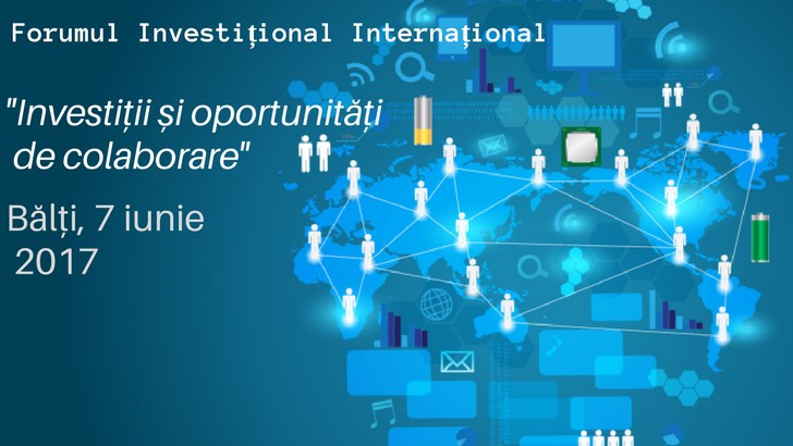 Camera de Comerț și Industrie a Republicii Moldova invită agenții economici să participe la Forumul Investițional Internațional cu genericul „Investiții și oportunități de colaborare”, organizat pe data de 7 iunie. 2017, în municipiul Bălți, Republica Moldova.