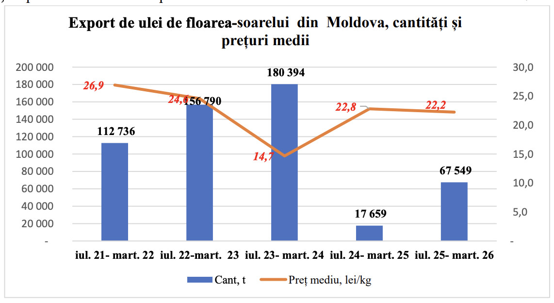 Un exemplu relevant rămâne sezonul 2023–2024, când au fost exportate 180 394 tone de ulei, în timp ce importurile s-au limitat la doar 3 637 tone.