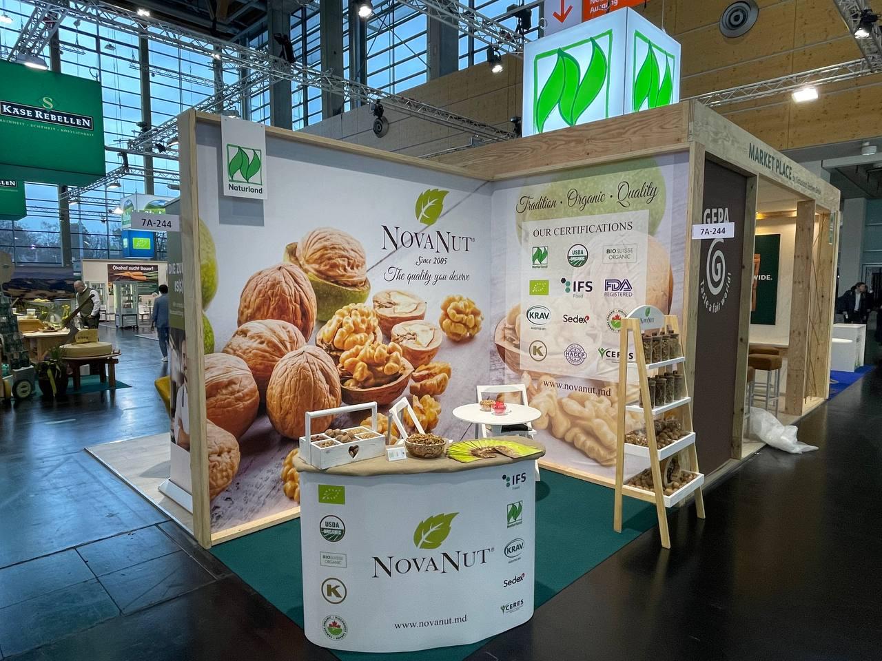 Nova Nut SRL efectuează exporturi de miez de nucă și nuci în coajă începând cu anul 2005, în circa 24 de țări ale lumii. Nu este prima participare în cadrul BioFach, fiind o experiență deosebită de a promova, împărtăși idei și de a impresiona cu calitatea, gustul rafinat și aroma naturală a miezului de nucă moldovenesc. Nova Nut reprezintă un simbol al istoriei, tradiției și calității – marcă comercială înregistrată în 20 de state ale lumii”.
