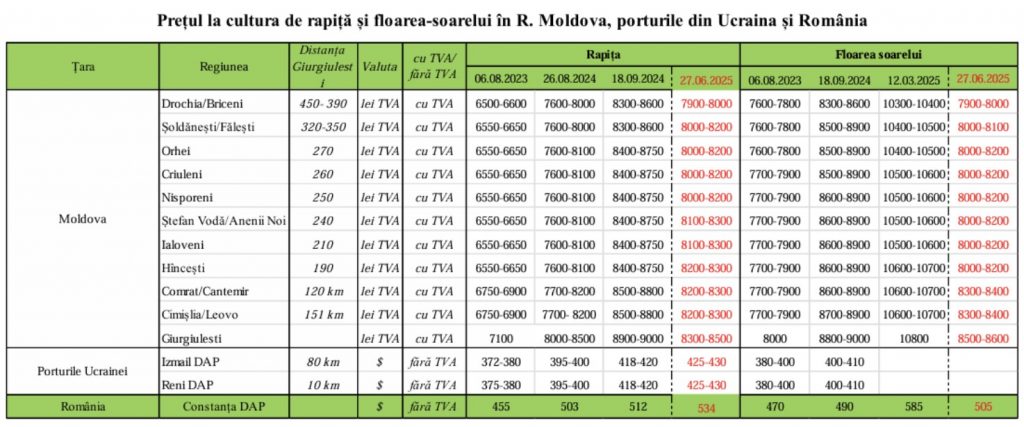 Datele arată că şi preţul la rapiţă este unul bun şi oscilează între 8.000 de lei pentru o tonă în raioanele de nord şi 8.500 lei – la Giurgiuleşti, fiind peste cel din sezonul trecut.