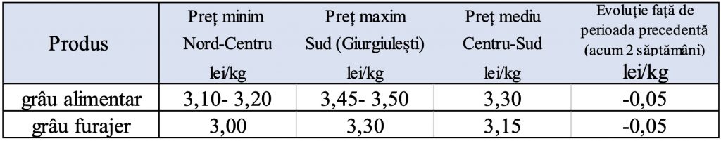 La Giurgiulești, grâul se tranzacționează la 3,45–3,50 lei/kg, în zona de centru la circa 3,20 lei/kg, iar în nord la aproximativ 3,10 lei/kg.