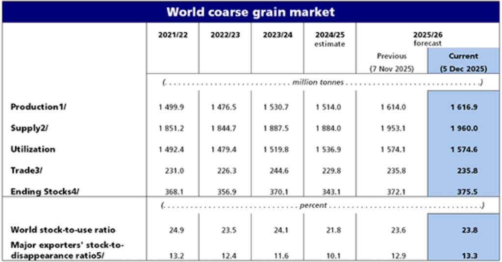 Îmbunătățirea perspectivei este determinată în principal de revizuirile pozitive ale producției de grâu, în special în Argentina, unde suprafețe mai mari decât cele estimate inițial și producții potențial record, susținute de condiții meteo favorabile, ar putea duce la cea mai mare recoltă din istorie.