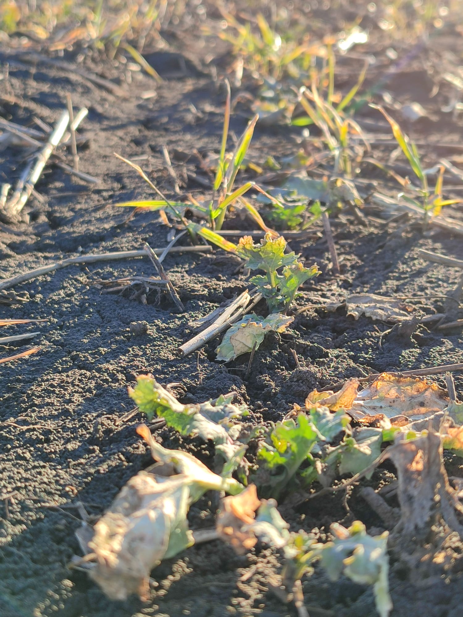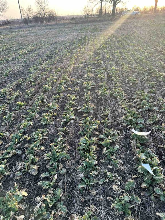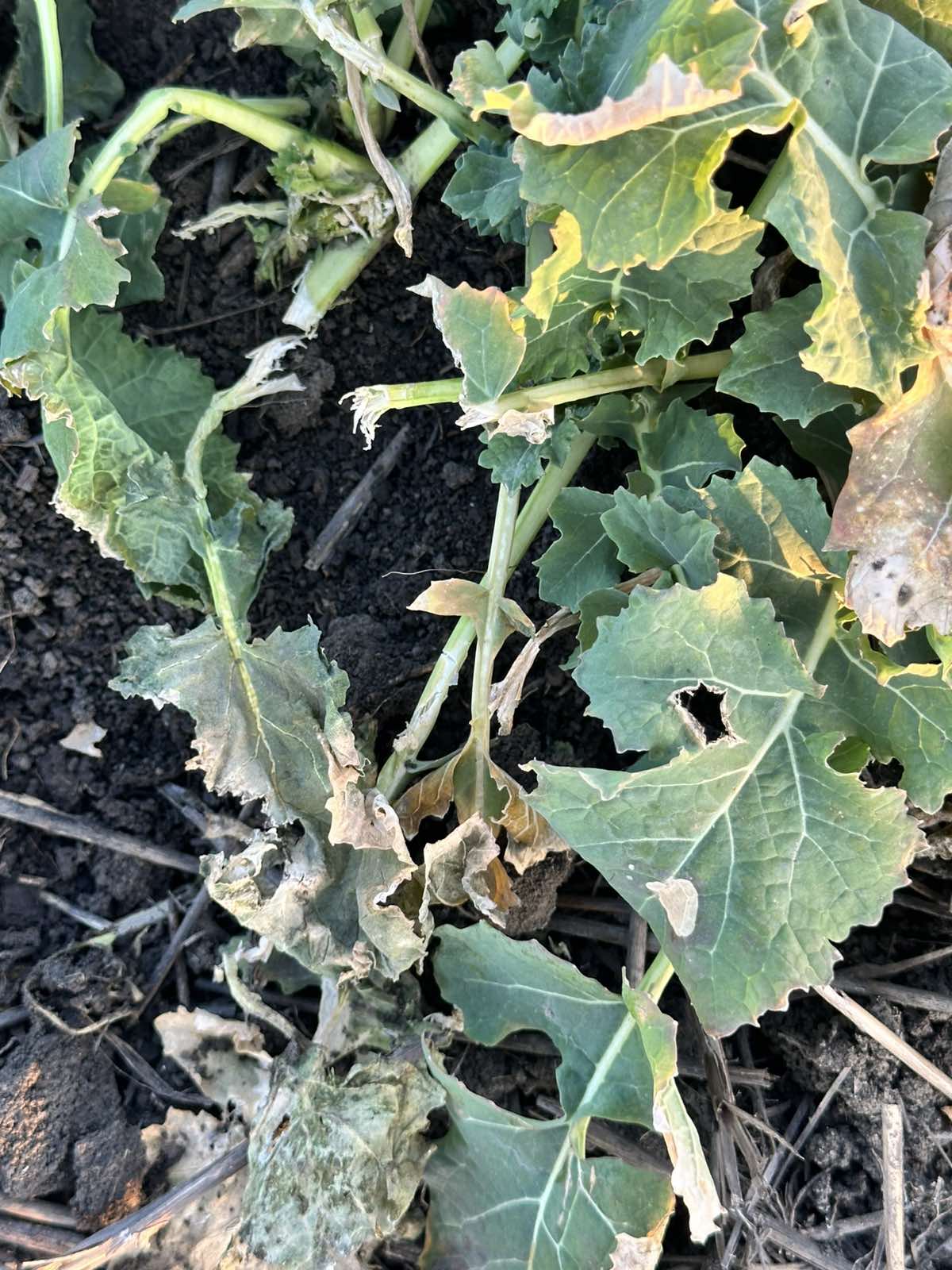 La ieșirea rapiței din iarnă, cultura pare viguroasă, dar este fiziologic slăbită. Sistemul radicular este parțial deteriorat de înghețuri și umiditate excesivă, activitatea fotosintetică este redusă, frunzele prezintă adesea semne de îmbătrânire prematură.