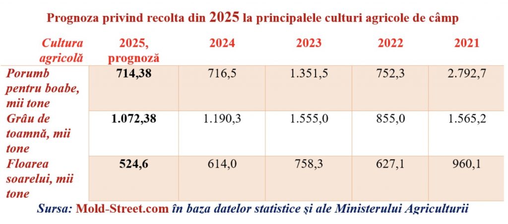 În acest an se va înregistra cea mai mică recoltă din ultimii 5 ani la principalele culturi agricole de câmp, arată prognozele Ministerului Agriculturii şi Industriei Alimentare (MAIA), notează mold-street.com.