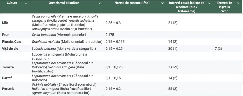 Important! Pentru eficiență maximă, se recomandă aplicarea în perioadele critice de eclozare și utilizarea capcanelor cu feromoni pentru monitorizarea populațiilor.