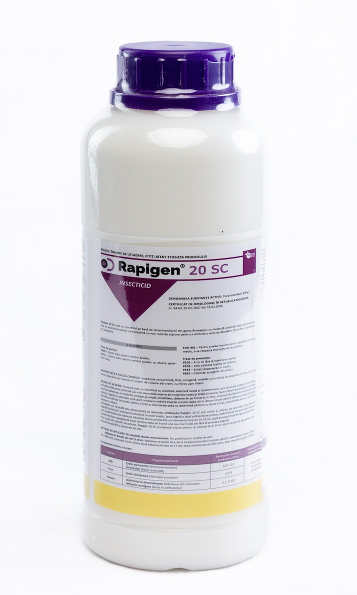 Rapigen 20 SC este un insecticid formulat pe bază de clorantraniliprol 200 g/l, cu o formulare de suspensie concentrată și un mod de acțiune avansat, destinat combaterii dăunătorilor din ordinele Lepidoptera și Coleoptera.