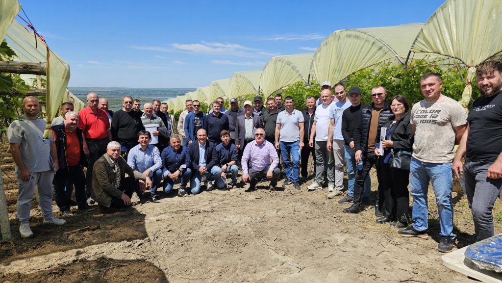 Evenimentul a avut loc în plantația companiei AMV Grape din satul Vadul lui Isac, raionul Cahul, prima livadă din Moldova unde a fost implementat acest sistem.