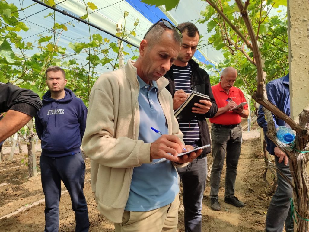 Peste 40 de producători au participat la instruirea practică cu tema „Operațiuni în verde în perioada de înflorire la vița de vie”, susținută de consultantul internațional Vito Manisi și expertul național Andrei Botezatu.