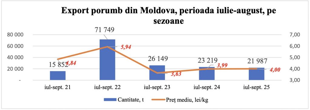 Porumbul moldovenesc s-a orientat în continuare către piețele din sudul și estul Europei, unde cererea s-a menținut constantă.