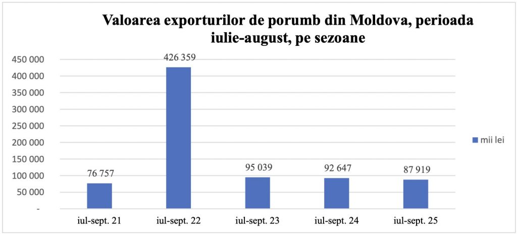 Aceste patru destinații au concentrat peste 95% din totalul exporturilor de porumb ale Republicii Moldova în trimestrul analizat.