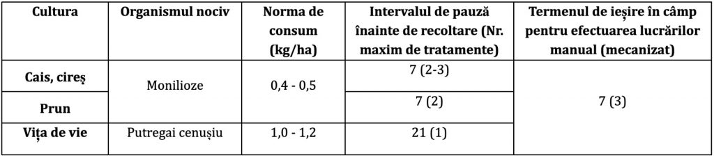 Mișcarea sistemică și translaminară asigură protecția inclusiv a noilor creșteri și a părții inferioare a frunzelor.