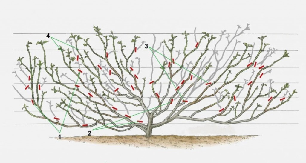 - Păstrarea ramurilor productive: lăstarii cu muguri fructiferi la vârfuri trebuie să se păstreze.