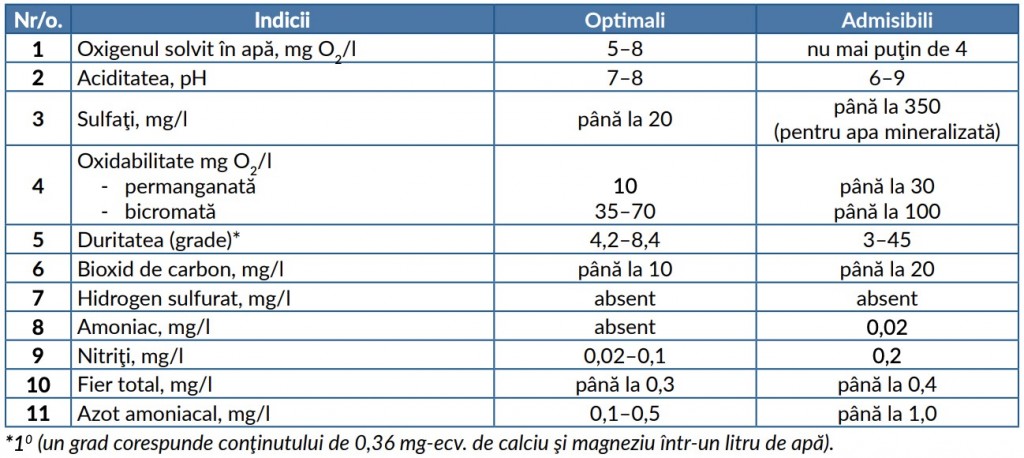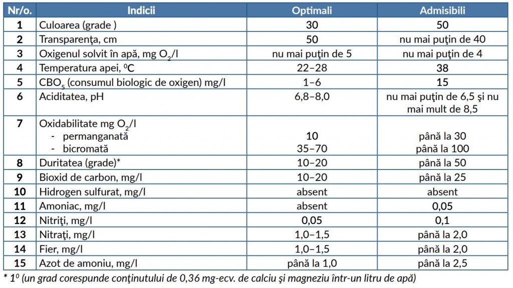 Trebuie de remarcat că nu toate sursele de apă sunt potrivite pentru piscicultură. De aceea, înainte de folosinţă este necesar de apreciat calitatea şi compoziţia chimică a apei.