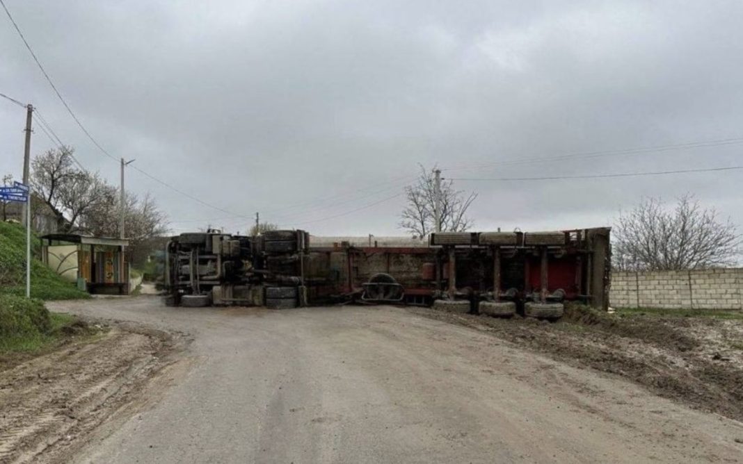 Traseul R-34 este blocat în zona localității Giurgiulești din raionul Cahul, după ce un camion cu cereale s-a răsturnat pe carosabil, informează MOLDPRES.