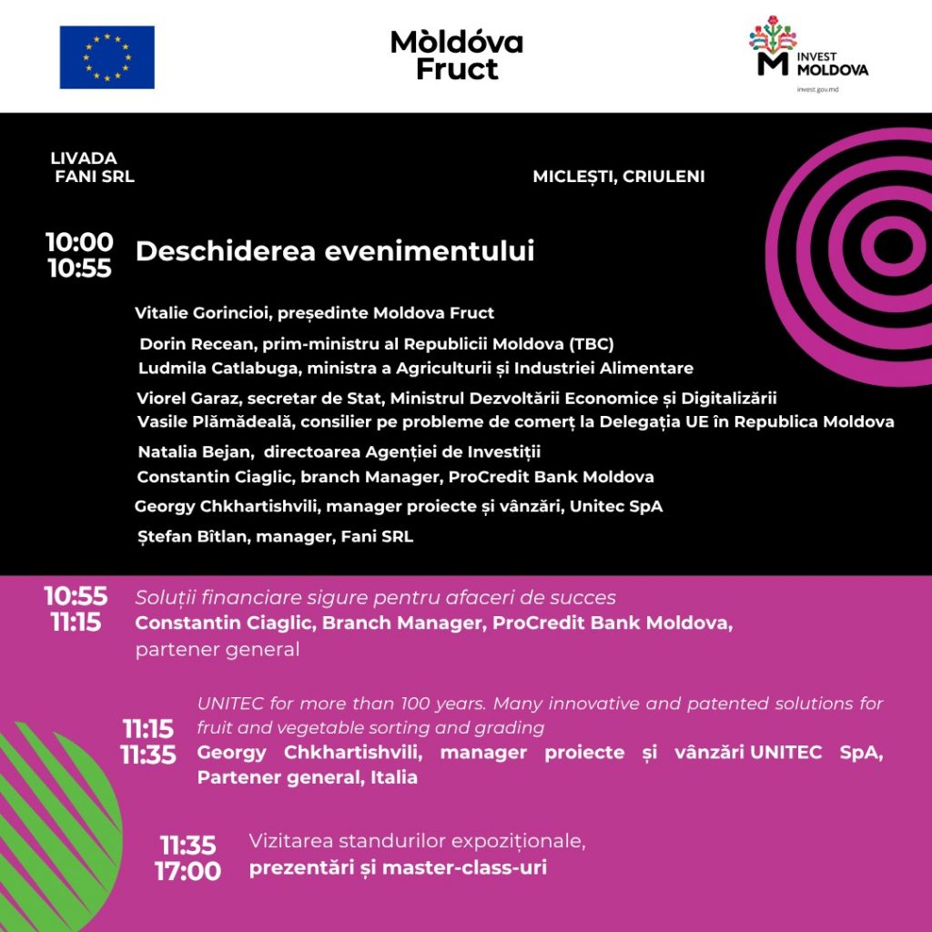 Agenda completă a evenimentului este disponibilă pe site-ul oficial: fruitday.md.